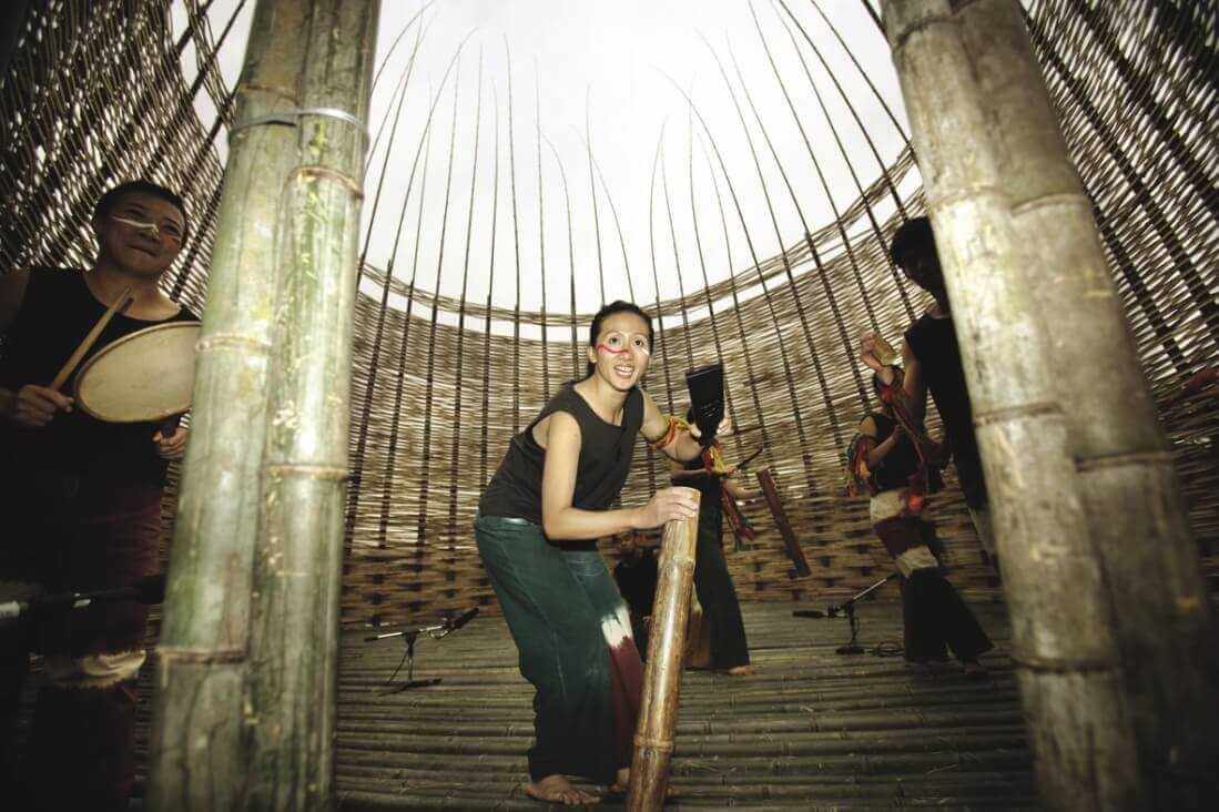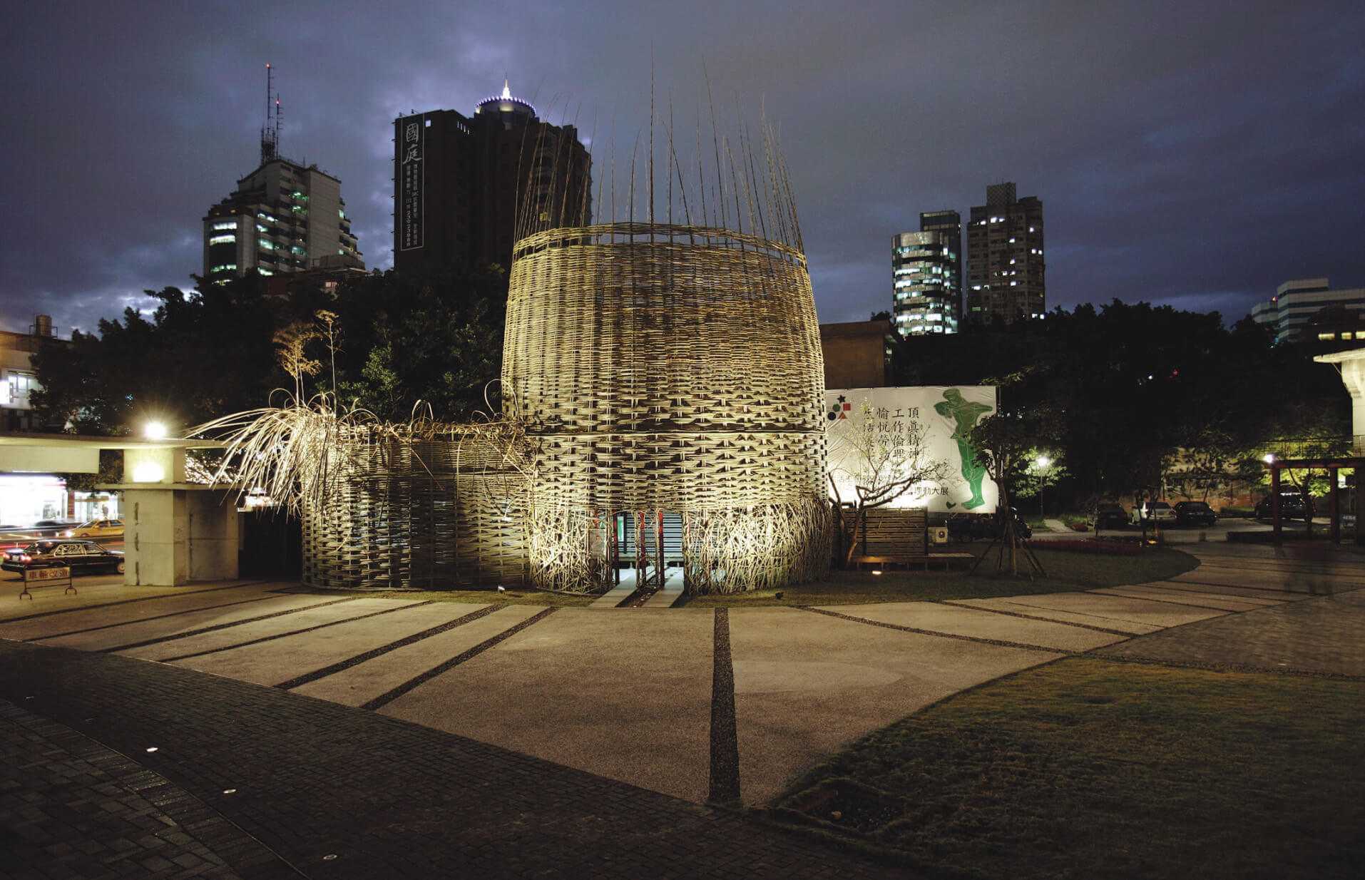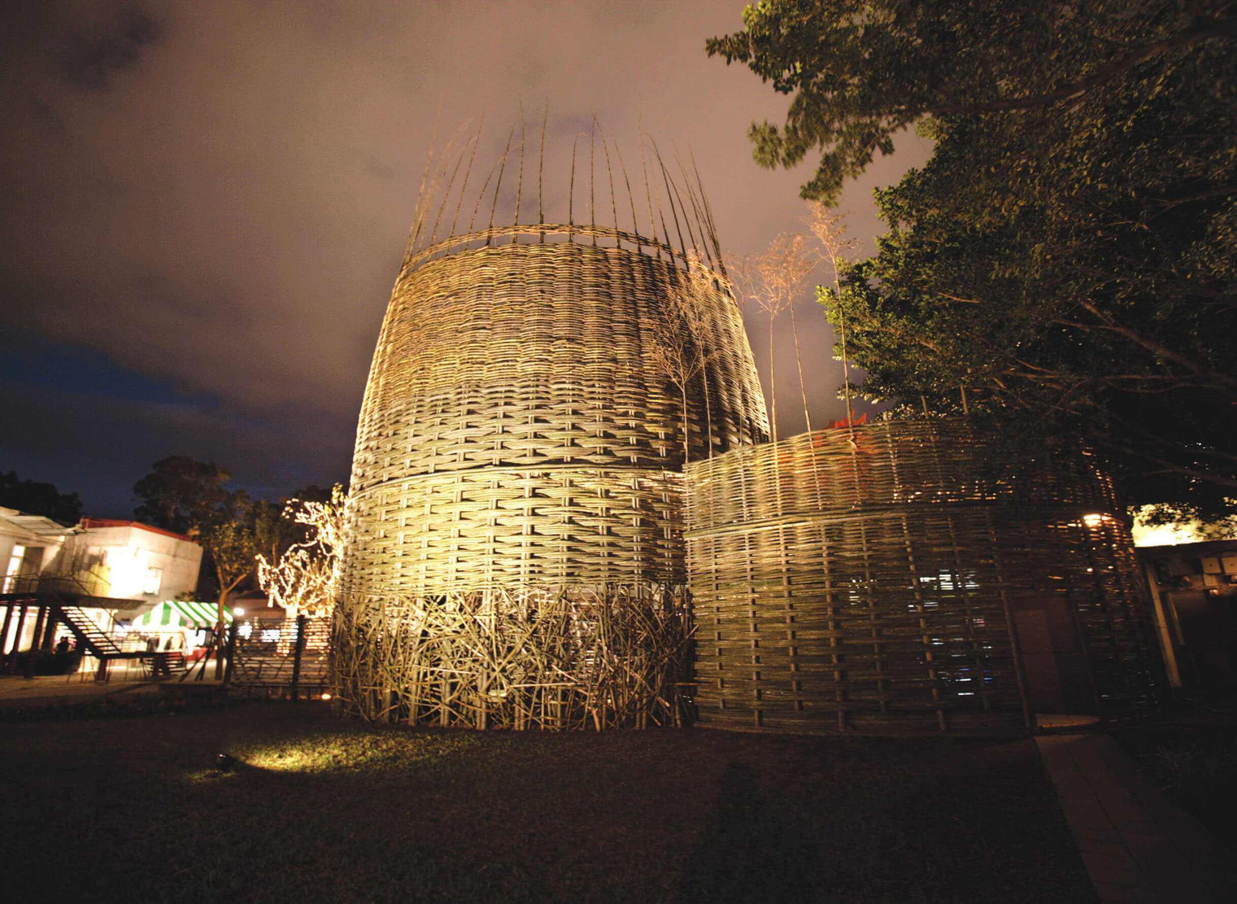 運用兩個方形水泥空間結構,一邊封閉空間變成巨型圓杯底座,民眾可以沿著樓梯,往上參觀附近風景,享受竹杯樓閣的樂趣;另外一邊的透空鐵架,轉化為酒瓶底座,並延展至15公尺高與酒廠煙囪互相對照這兩座竹編結構體中間形成另外一個區域新增一個臨時的戶外表演休憩的場所在竹編空間內展演藝術家唱出自然空靈的樂音彷彿進入自然之林呈現完全創作之境的藝術靈魂