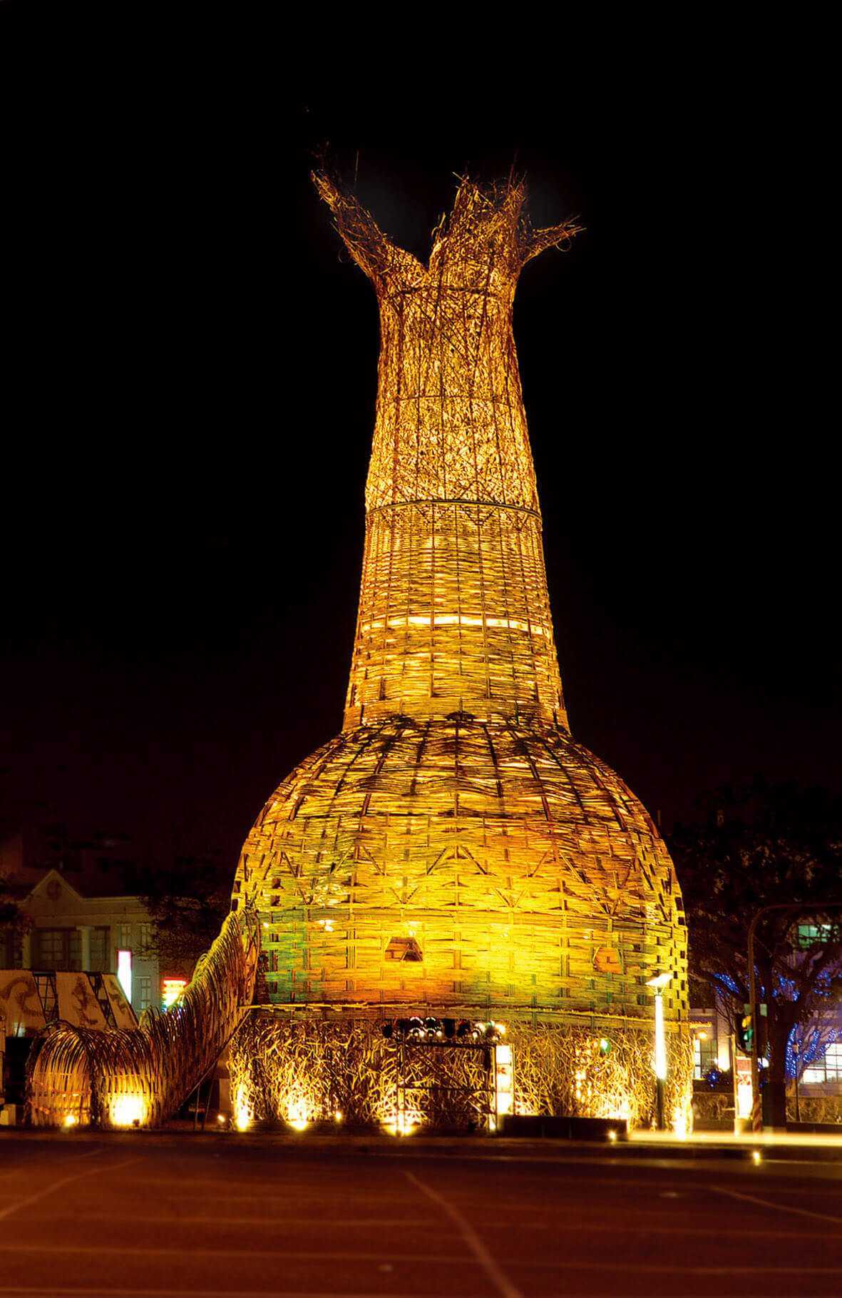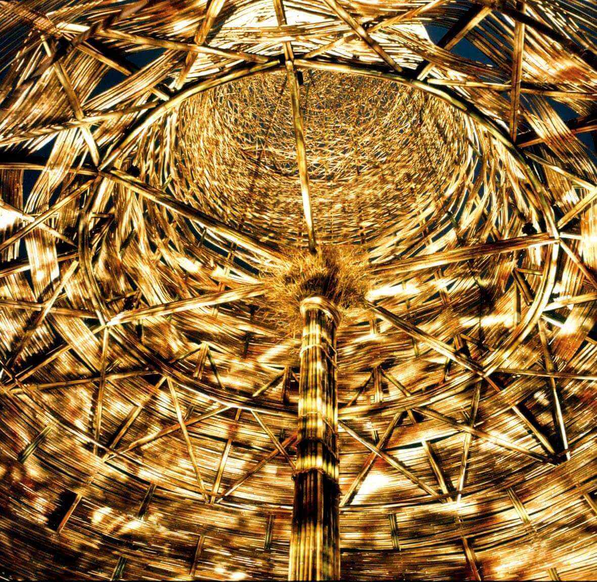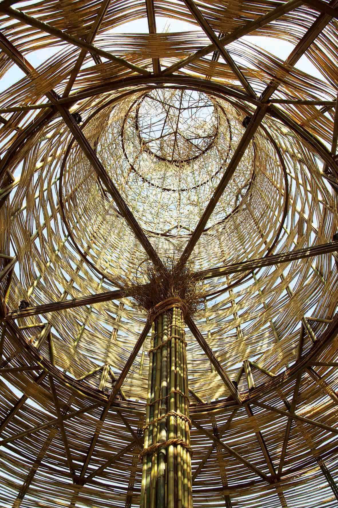 作品採擷阿里山鄒族「庫巴」集會所的凝聚造型及神聖精神,並邀集本縣高山農民師傅共同合作,運用當代地景藝術概念,呈現嘉義縣自然環境、原生文化的各項群體關係,讓參與民眾重返入林,體感清香氣味及竹縫交錯光影,身心彷彿沉浸在高山群林中。