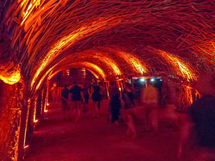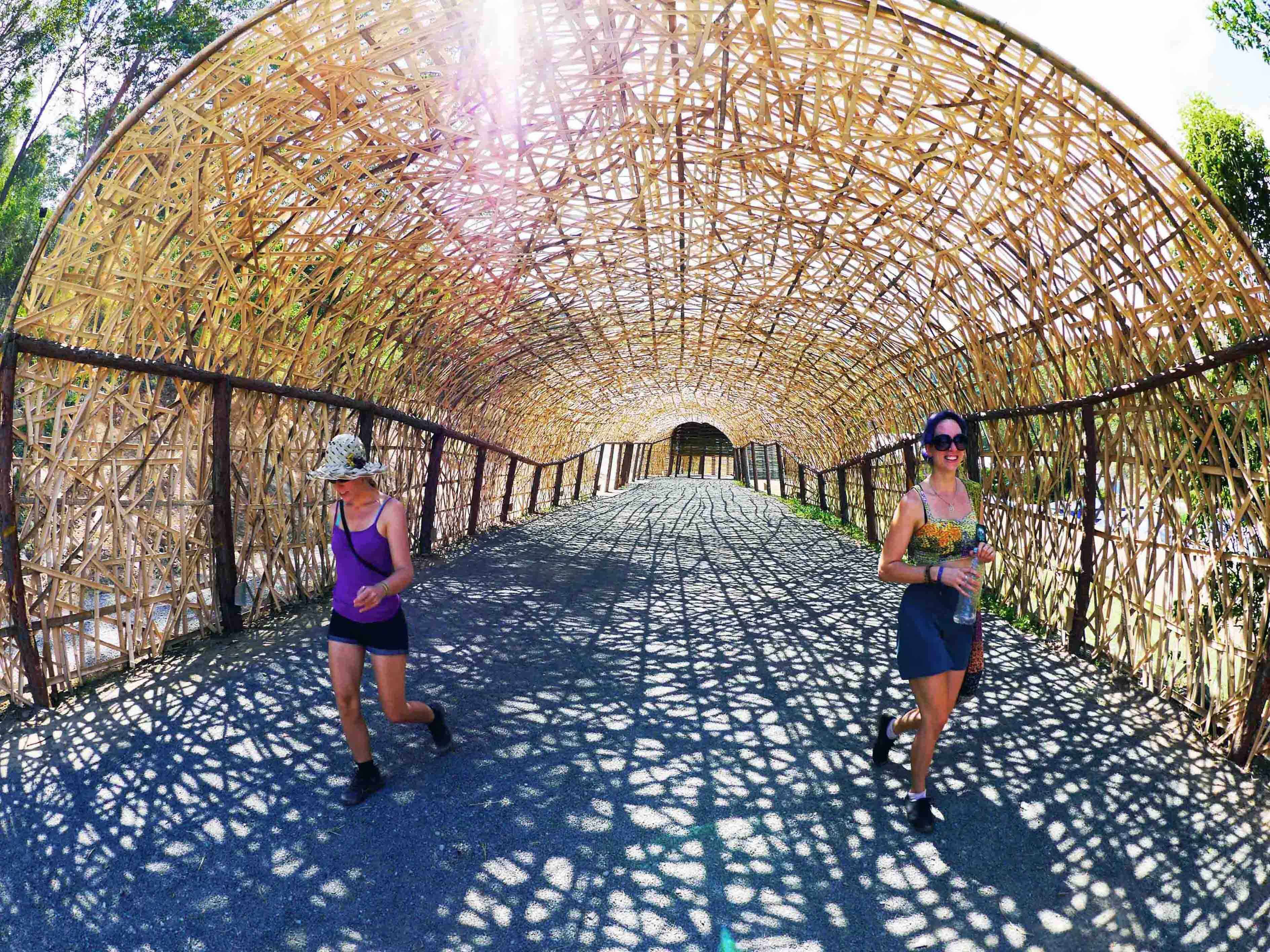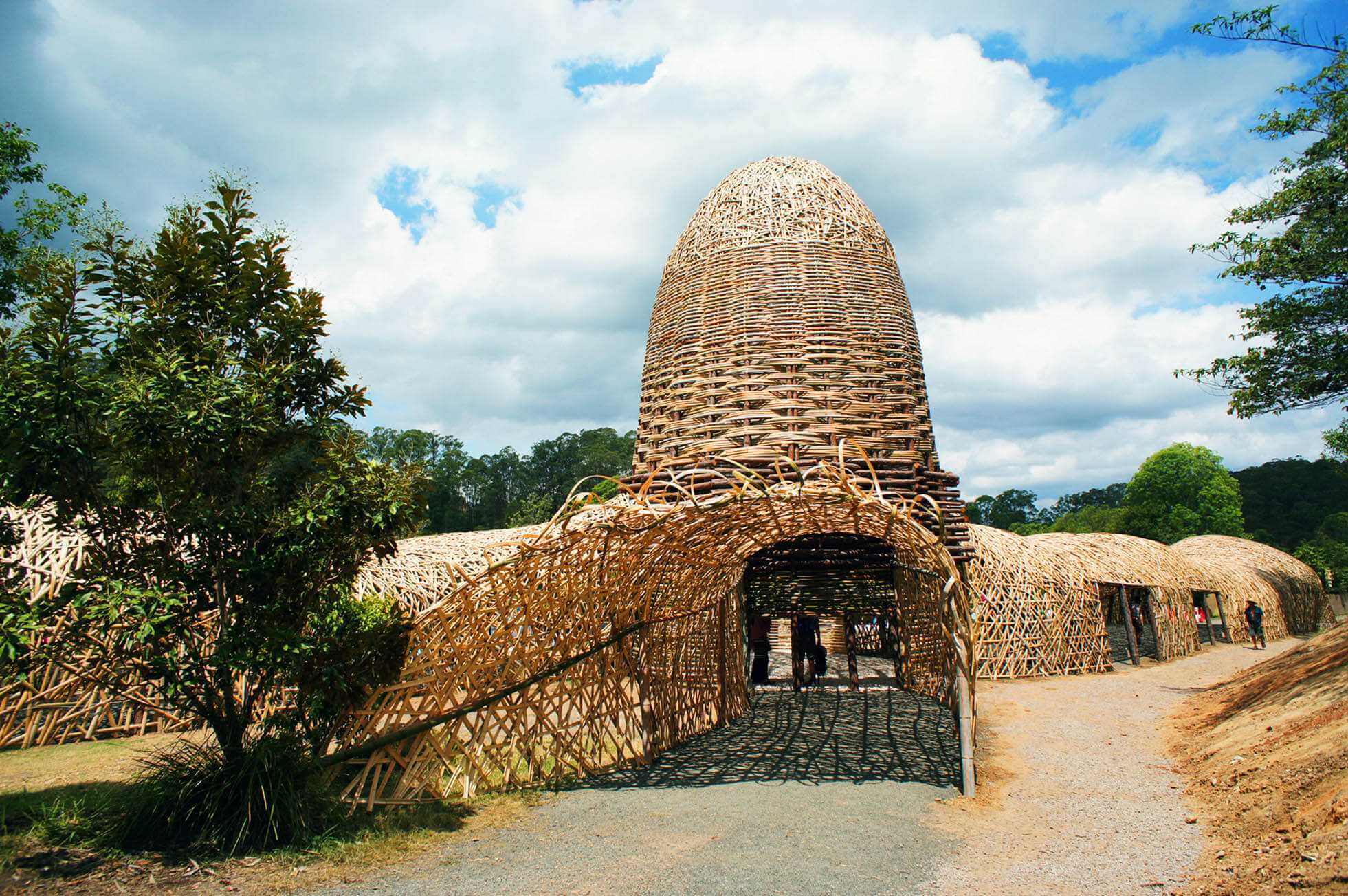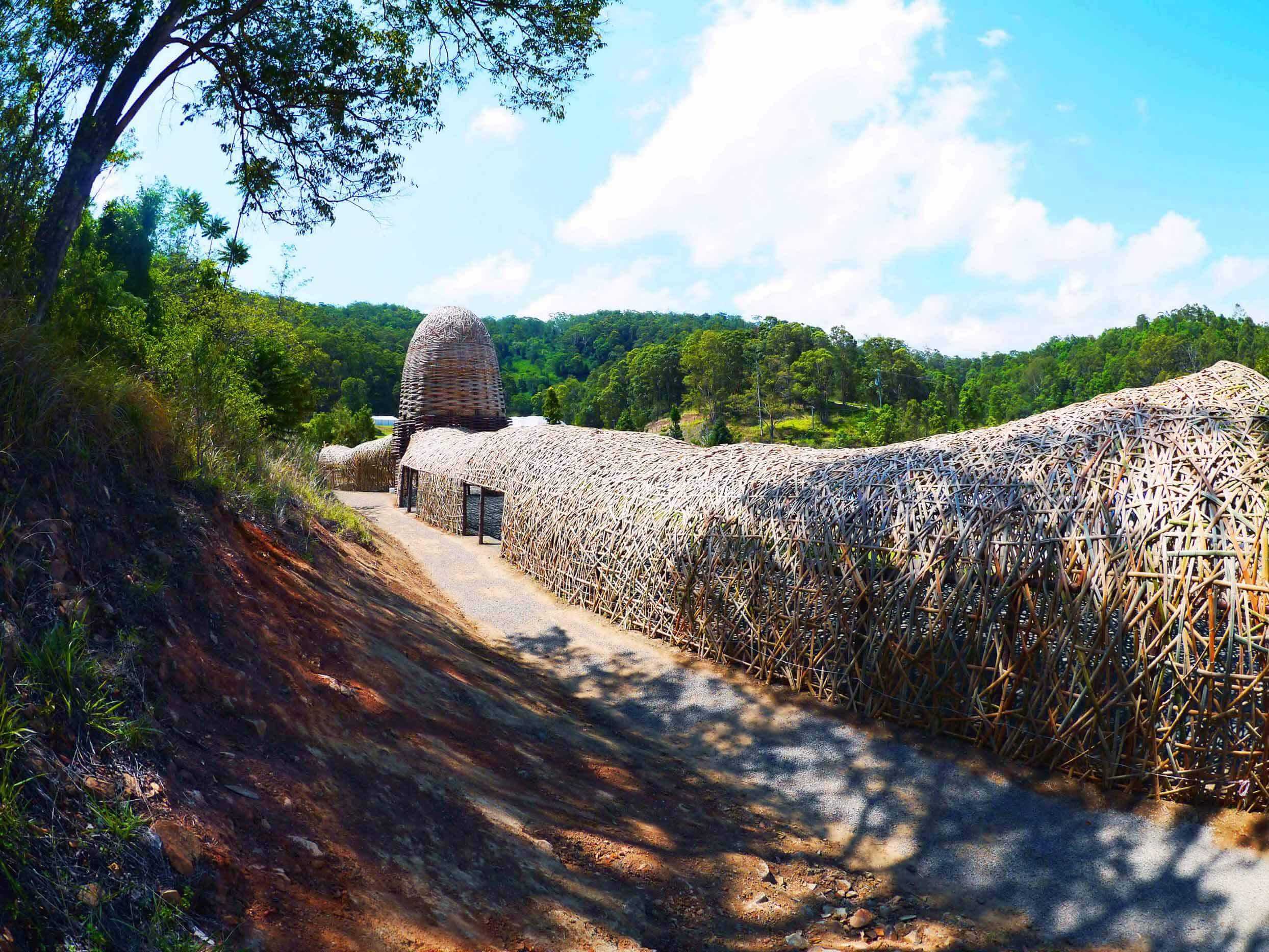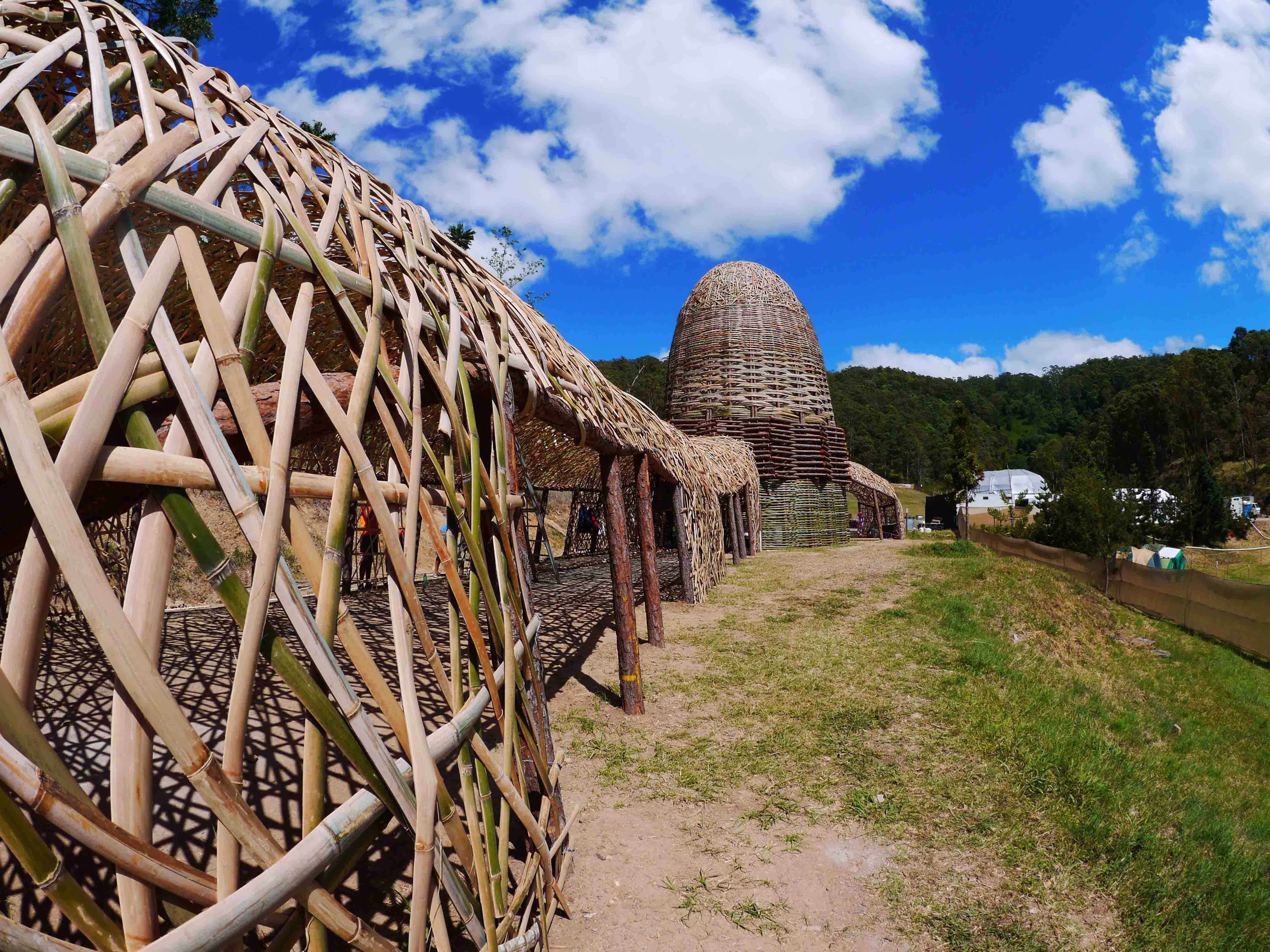 《編織天幕》由王文志率領嘉義7人團隊,加上30名當地志工,花費3周時間共同完成。藉由300根竹子及100棵修棄的松樹共構而成,光線、微風都能穿過編織縫隙,與內外連結。竹編高聳穹窿,白晝的陽光垂灑洋溢其間,猶如聖光降臨,讓觀眾享受寂靜氣氛。